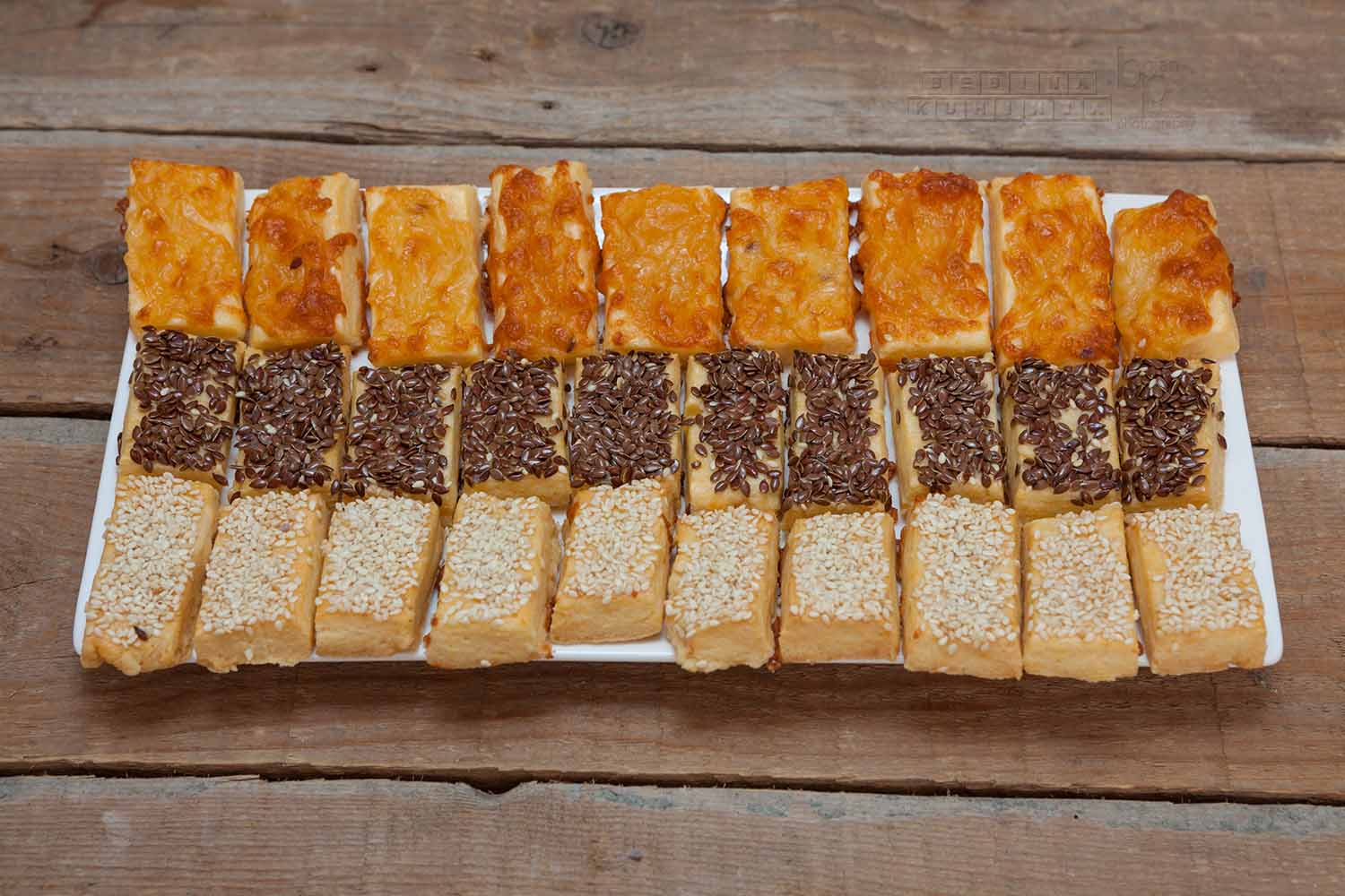Seći na željene oblike i još polu zamrznute staviti u zagrejanu rernu na 200 stepeni i peći 20-25 minuta. Pečene štangle ostaviti sat vremena da se hlade i služiti.